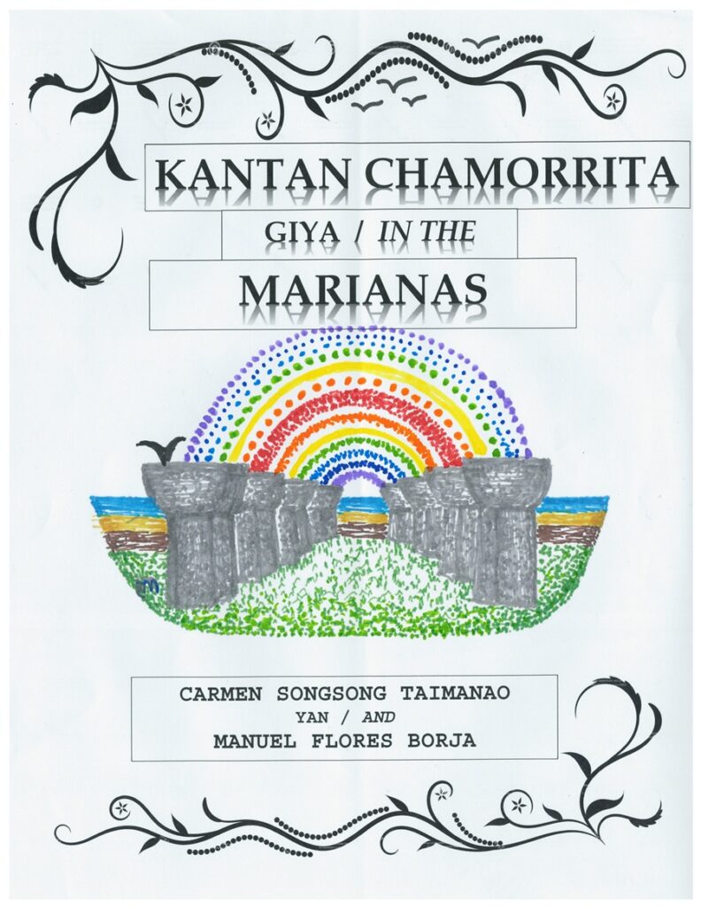 The Kantan Chamorrita giya/in the Marianas is a 2025 publication of the Inetnun Kutturan Natibun Marianas/Kkoor Aramasal Marianas (IKNM/KAM). Co-authored by Carmen Songsong Taimanao and Manuel Flores Borja, the 383-page book (soft-cover) contains more than 600 older kantan Chamorrita verses, as well as more than 100 newer verses that have never been published before.
